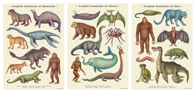 It’s a collection of colorful and fascinating menagerie of mysterious creatures that were witnessed and reported by people from around the world – from the remote deserts of Australia to the high mountains of North America and beyond.